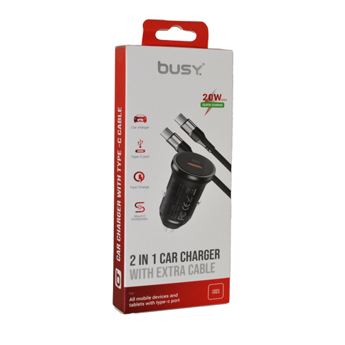 Busy® 2 in1 car charher with cable C to C – 51076