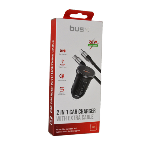 Busy® 2 in1 car charher with cable C to Lightning – 51077