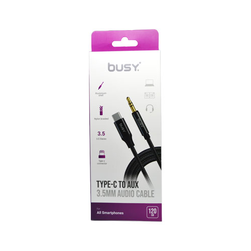 Busy® AUX кабелот 1.2m сребрен (Jack до Type-C) 051069 овозможува висококвалитетен пренос на звук помеѓу уреди со различни приклучоци. Совршен е за поврзување на смартфони, таблети, лаптопи и аудио системи што користат Type-C и 3.5mm Jack конектори.